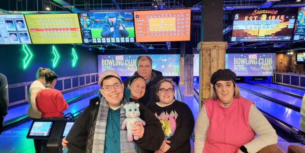 Photo caption: Members of the Loveable social group at Allstars Sports Bowl in Bridgwater.